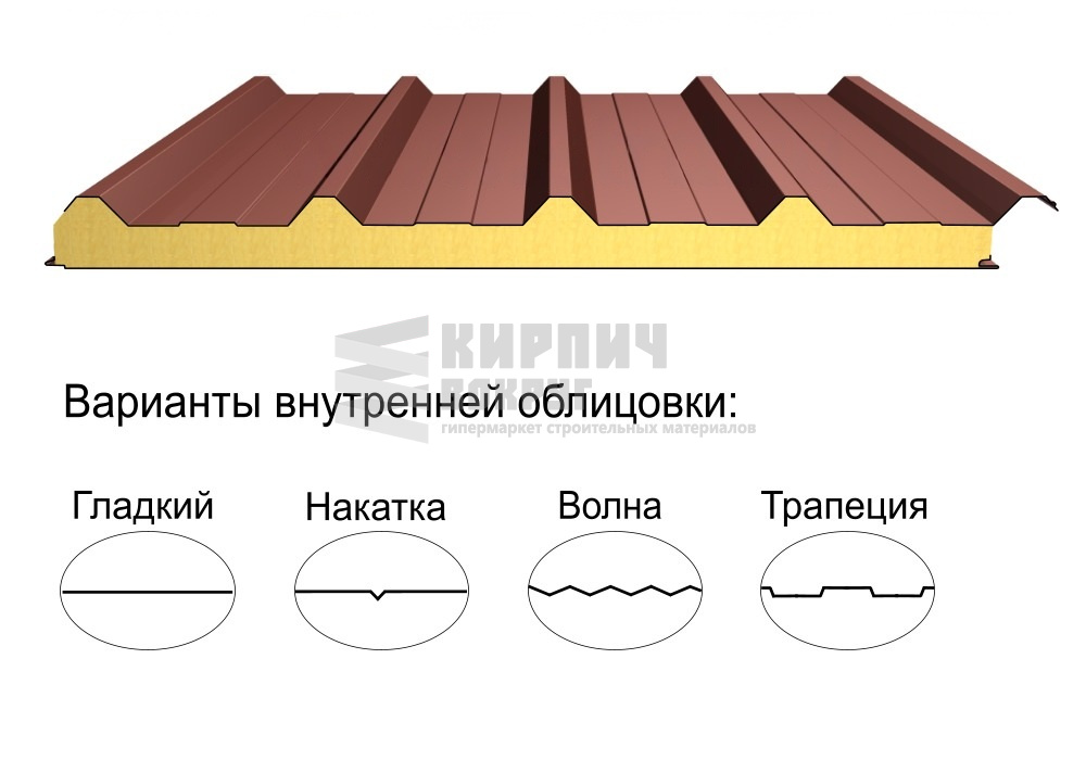 В интернет-магазине "Кирпич Вокруг" Вы можете купить Кровельная трёхслойная сэндвич-панель кровельный профиль 50мм 1000мм с видимым креплением минеральная вата Полиэстер Металл Профиль в Электростали, а наши специалисты готовы вам помочь с выбором по адресу: , или оказать консультацию по телефону: .